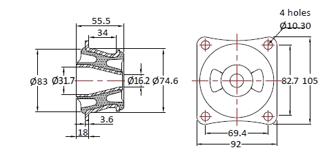 VMB-6045H Sandwich Mounts Metric Thread Type 2